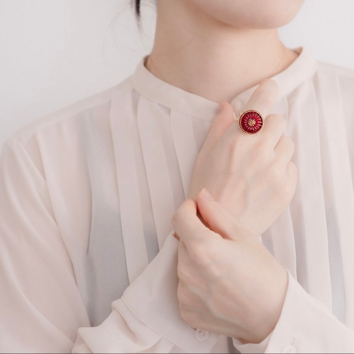 手元でそっと灯る赤が、あなたらしさを引き立ててくれます。