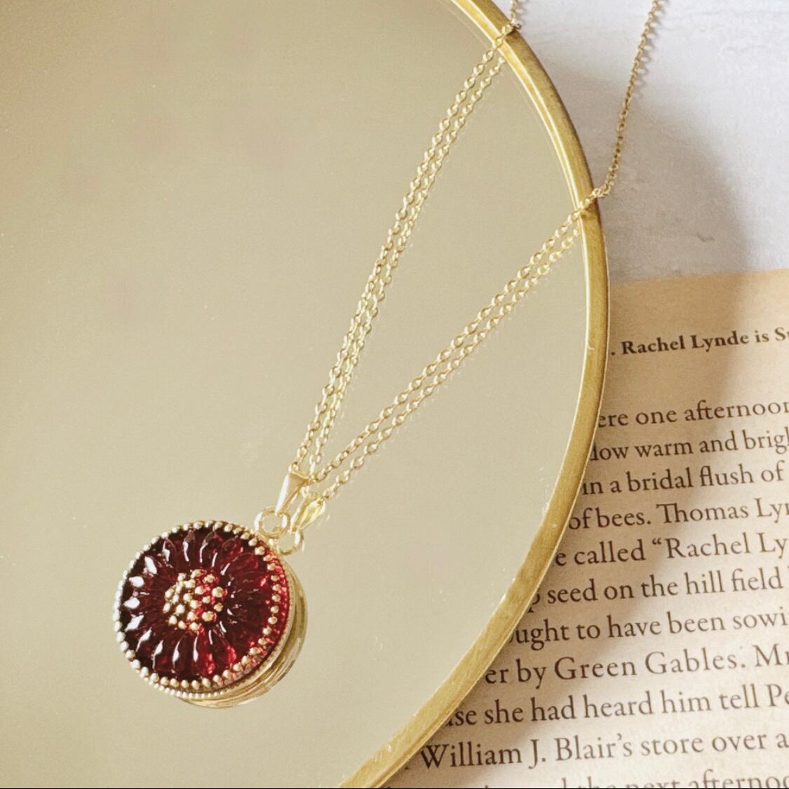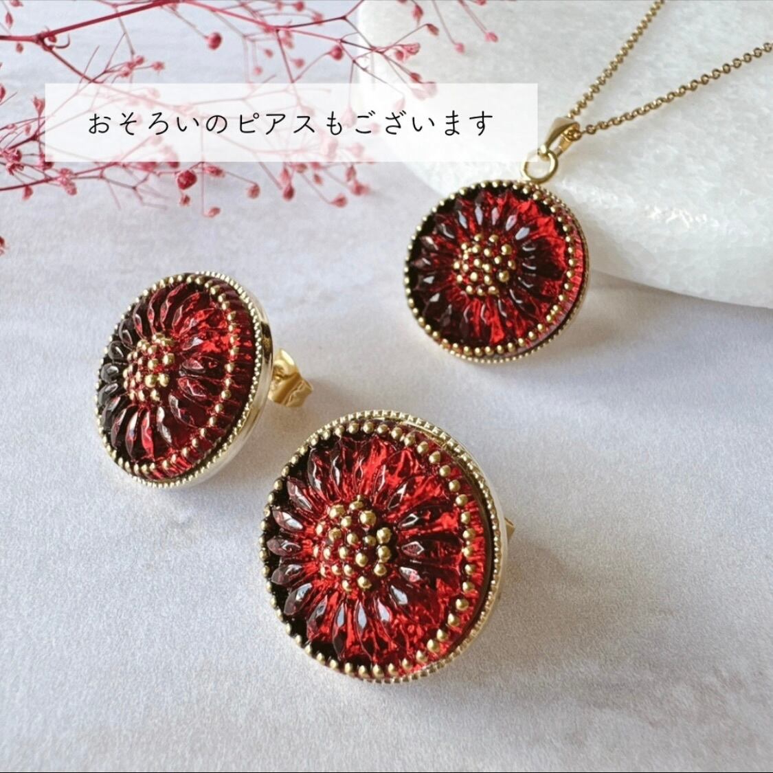 深みレッドのチェコガラスボタンネックレス|秋冬コーデを上品に彩るアクセサリー・ギフトにも