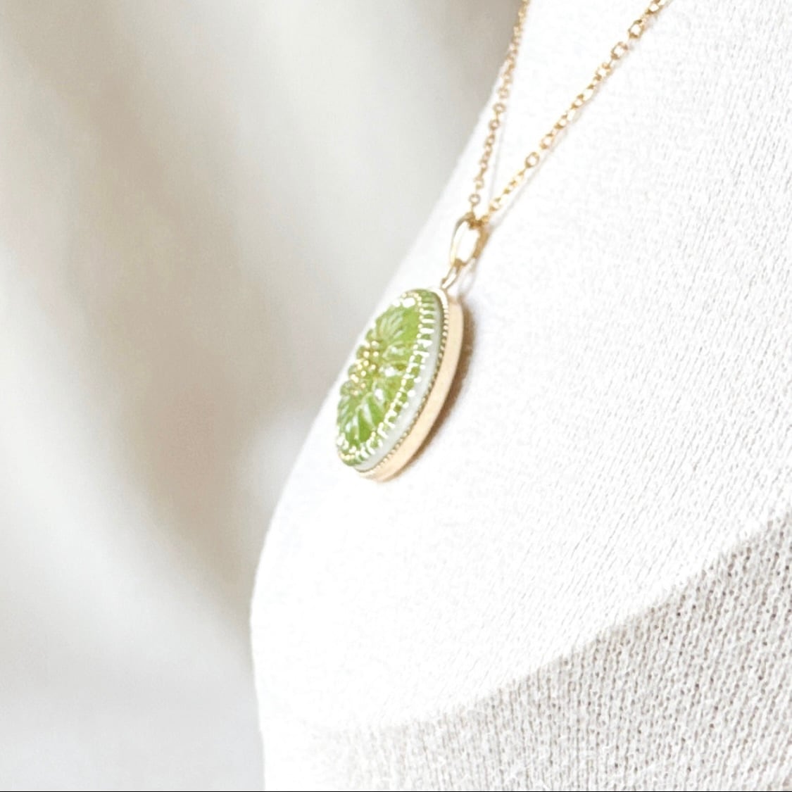 チェコ共和国の熟練ガラス職人が一つひとつ手掛けたガラスボタンは、繊細な花模様と透明感のある輝きが特徴。まるでアンティークジュエリーのように、時を閉じ込めたかのような儚い美しさを放ちます。
