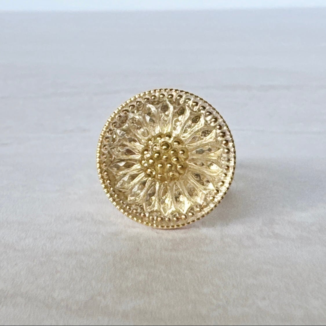 チェコ製ガラスボタン、リング台座(真鍮に金メッキ加工)