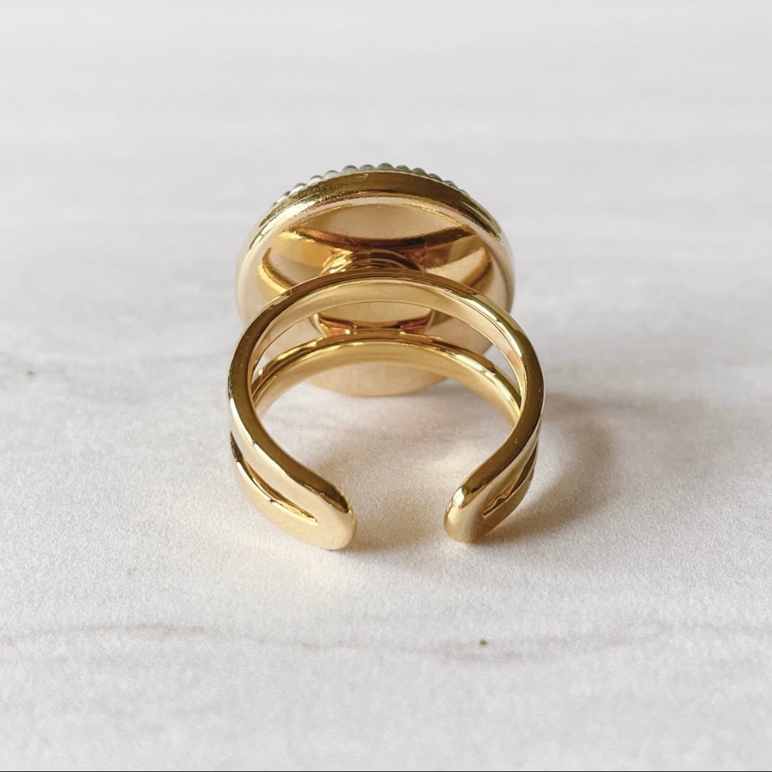 チェコ製ガラスボタン、リング台座(真鍮に金メッキ加工)