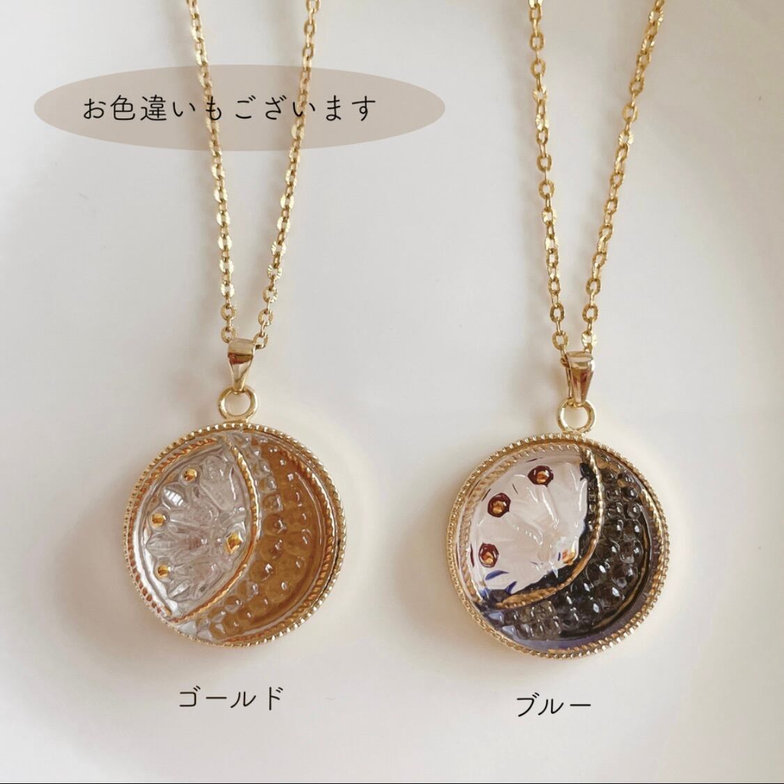 ブルームーンと星のチェコガラスボタンネックレス|サージカルステンレス・長さ調整可
