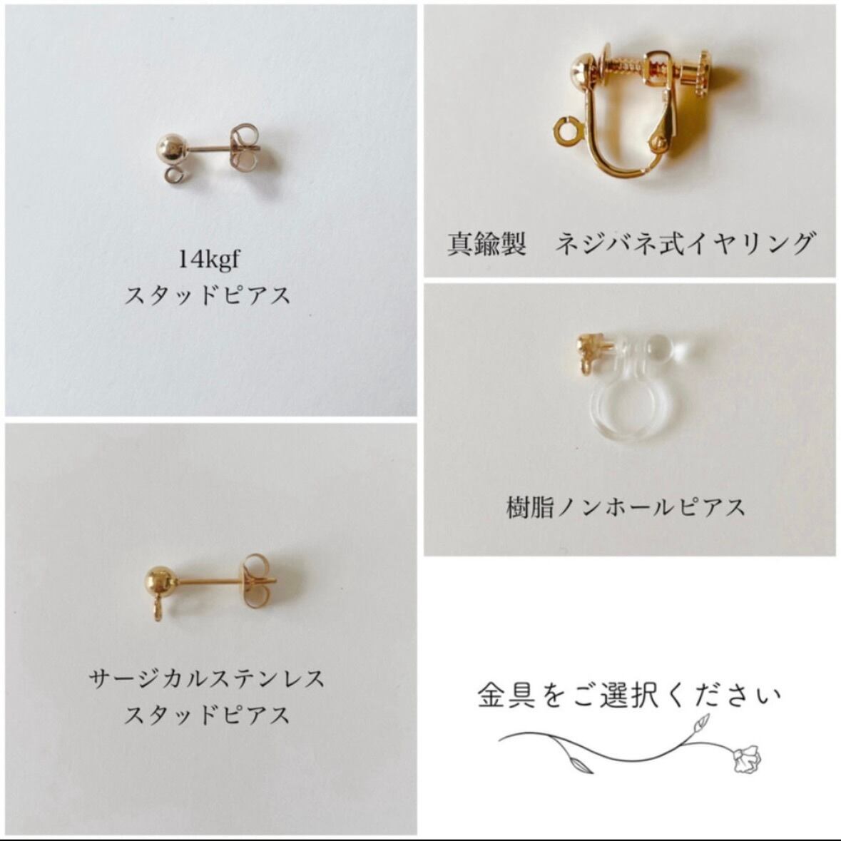 ◆耳飾りとネックレスのアジャスターの素材をお選びオプションよりお選びください