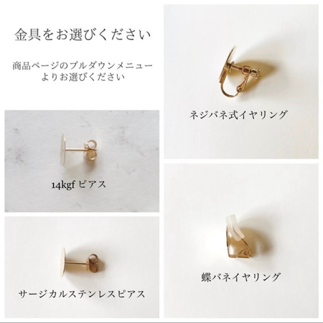 ◆イヤーアクセサリーの金具をプルダウンメニューよりお選びください。