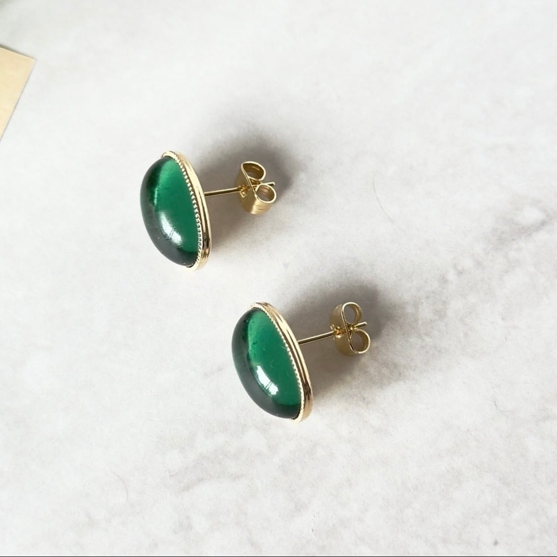 チェコガラス グリーン ピアス/イヤリング やわらかな深緑